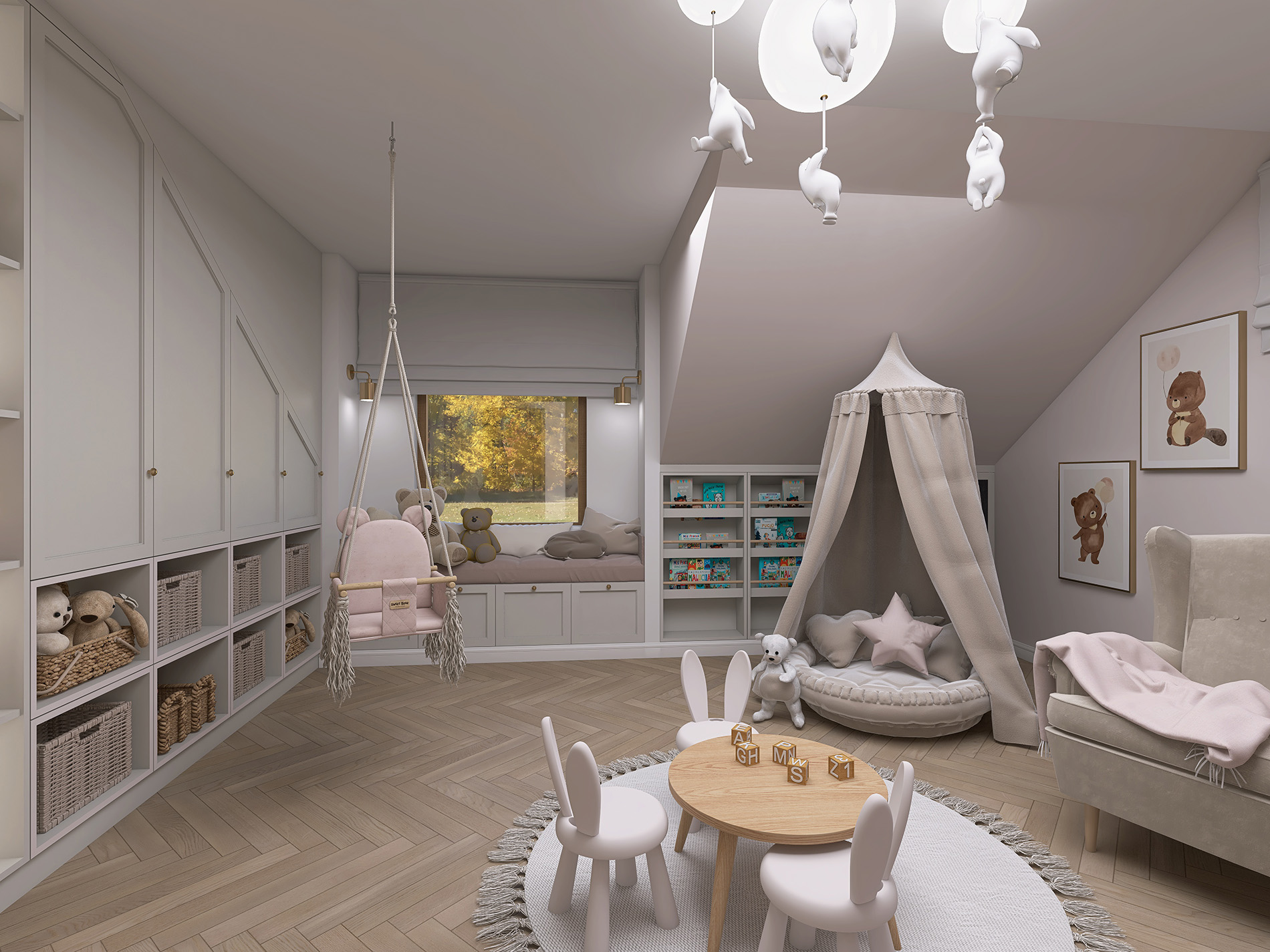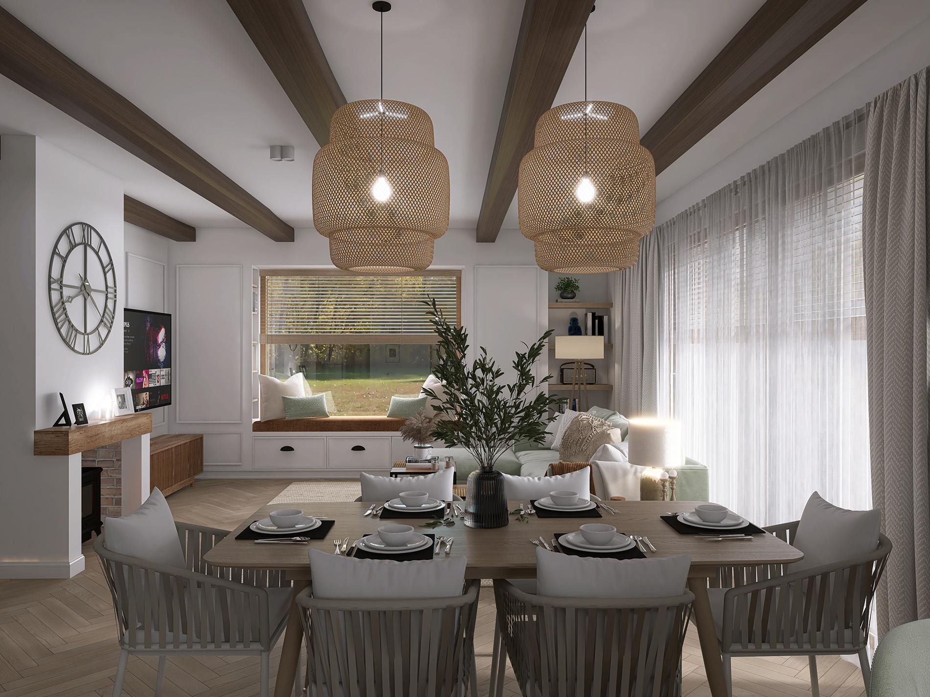 Projekt wnętrz domu jednorodzinnego.